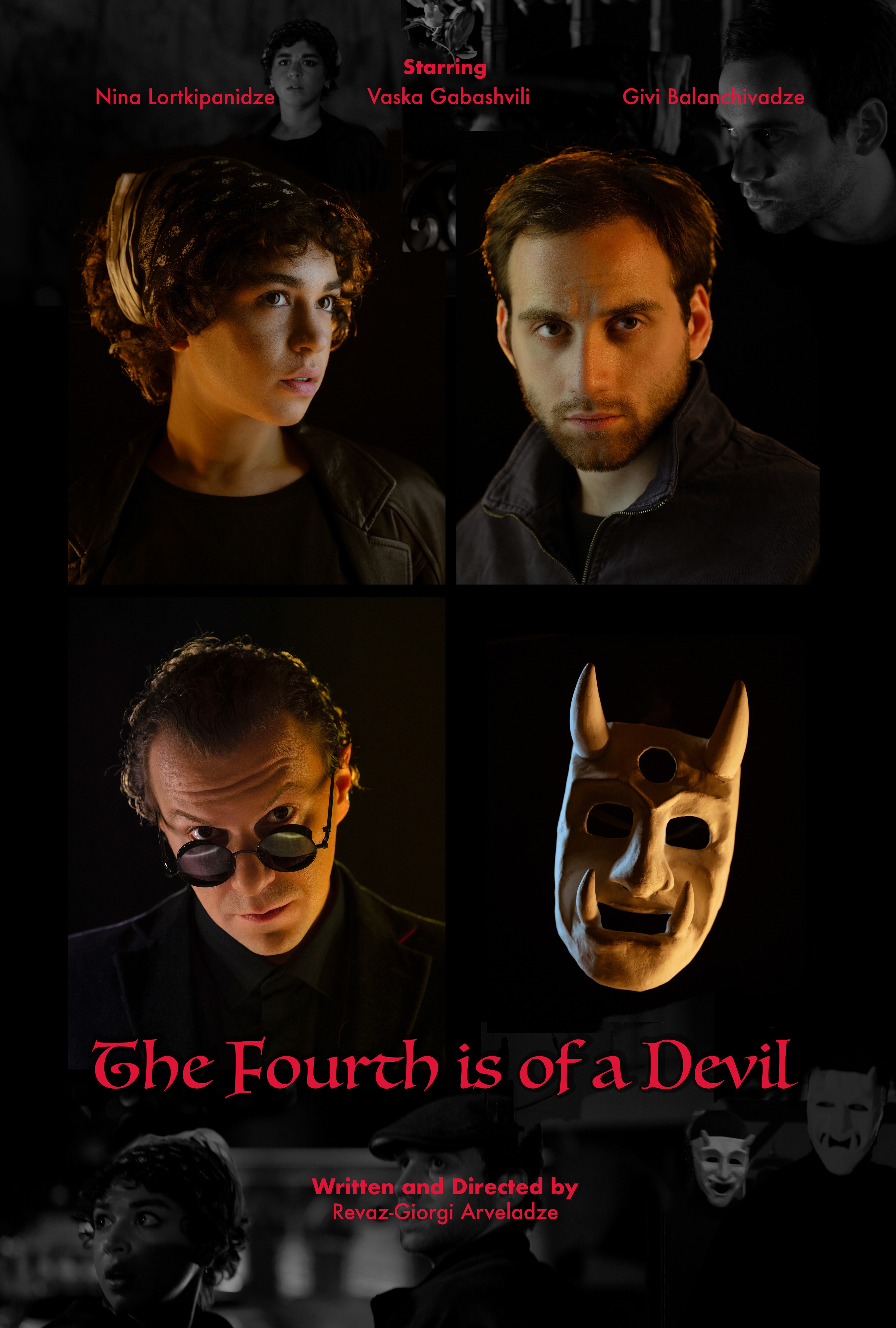 Portraits and poster design made by me, for the short film "The Fourth is of a Devil" Director Revaz-Giorgi Arveladze.